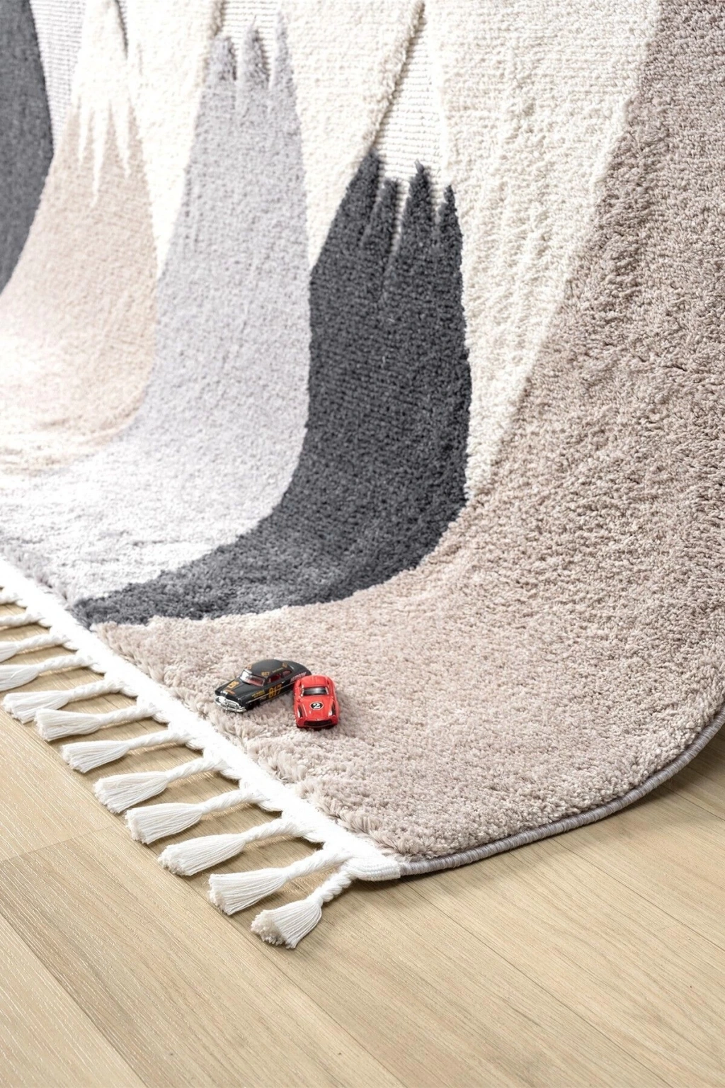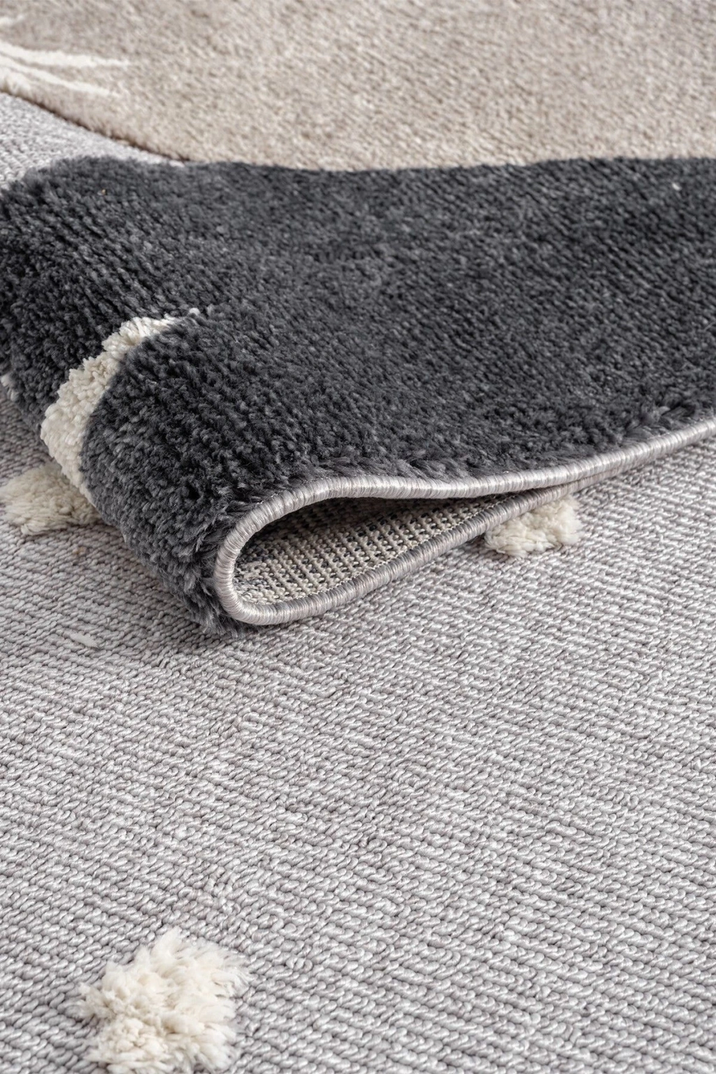 İpliği polyester olup, taban malzemesi %100 pamuktur.; Leke tutmaz.; ; Saçaklıdır.; Robot süpürgeye uygundur.; ; Dikdörtgen deseni ile halı modası evinize gelir, figürlü mobilyalar ile uyumludur.; ; Çocuk odası kullanımına uygundur.; Yumuşak yapılı bir üründür.; ; Yerden ısıtmalı alanlarda kullanılabilir.; ; Taban yalıtımına katkı sağlar.; ; *Pamuk tabanlı halıların en veya boylarında %3 kısalma görülebilir.; ; *Hav Yüksekliği/Kalınlık: 17 mm.