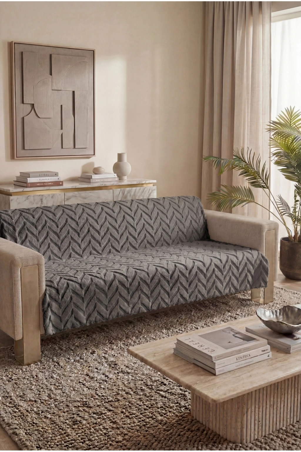 Bambu Anthrazit Yumuşak Koltuk Örtüsü Kayma Yapmaz Yıkanabilir Süngerli ( 170x210) ZİGZAG ANTHRAZİT