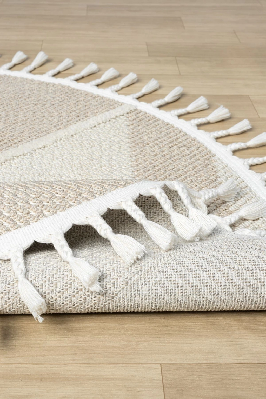 - Modern dekorasyonun vazgeçilmez parçası olan bu halı, bej rengiyle her türlü mekâna uyum sağlar.; - Dikdörtgen şekli sayesinde salon veya oturma odasında rahatça kullanılabilir; antre veya çocuk odası için de idealdir.; - Makine halısı üretim tekniği ile üretilmiş olup, dayanıklılığı ve kalitesiyle ön plana çıkar.; - Örgü saçak detayı ile zenginleştirilmiş tasarım, halının estetik görünümünü artırırken aynı zamanda dokunsal bir deneyim sunar.; - Pamuk taban kullanımı sayesinde kayma riskini azaltarak güvenli bir kullanım sağlar; aynı zamanda kolay temizlenebilir özelliğiyle pratiktir.; - Orta hav yüksekliği (6 - 12 mm),konforlu bir yürüyüş deneyimi sunarken aynı zamanda halının formunu korumasına yardımcı olur.; - Polyester materyali ile uzun ömürlü kullanım vaat ederken, yıkanabilir olması temizliği kolaylaştırır.; - Salon veya oturma odası gibi geniş kullanım alanlarına uygun boyutları (200 x 290 cm) ile mekanınıza şıklık katarken fonksiyonellikten ödün vermez.; - Bej renginin sıcak tonları ile mekanınıza huzurlu bir atmosfer kazandırırken, modern stil sahibi bireyler için idealdir.; - Web renk seçeneği olarak da bej tonunu sunarak online alışveriş deneyiminizi zenginleştirir; farklı renk seçenekleri arasında kolayca karar verebilmenize olanak tanır.