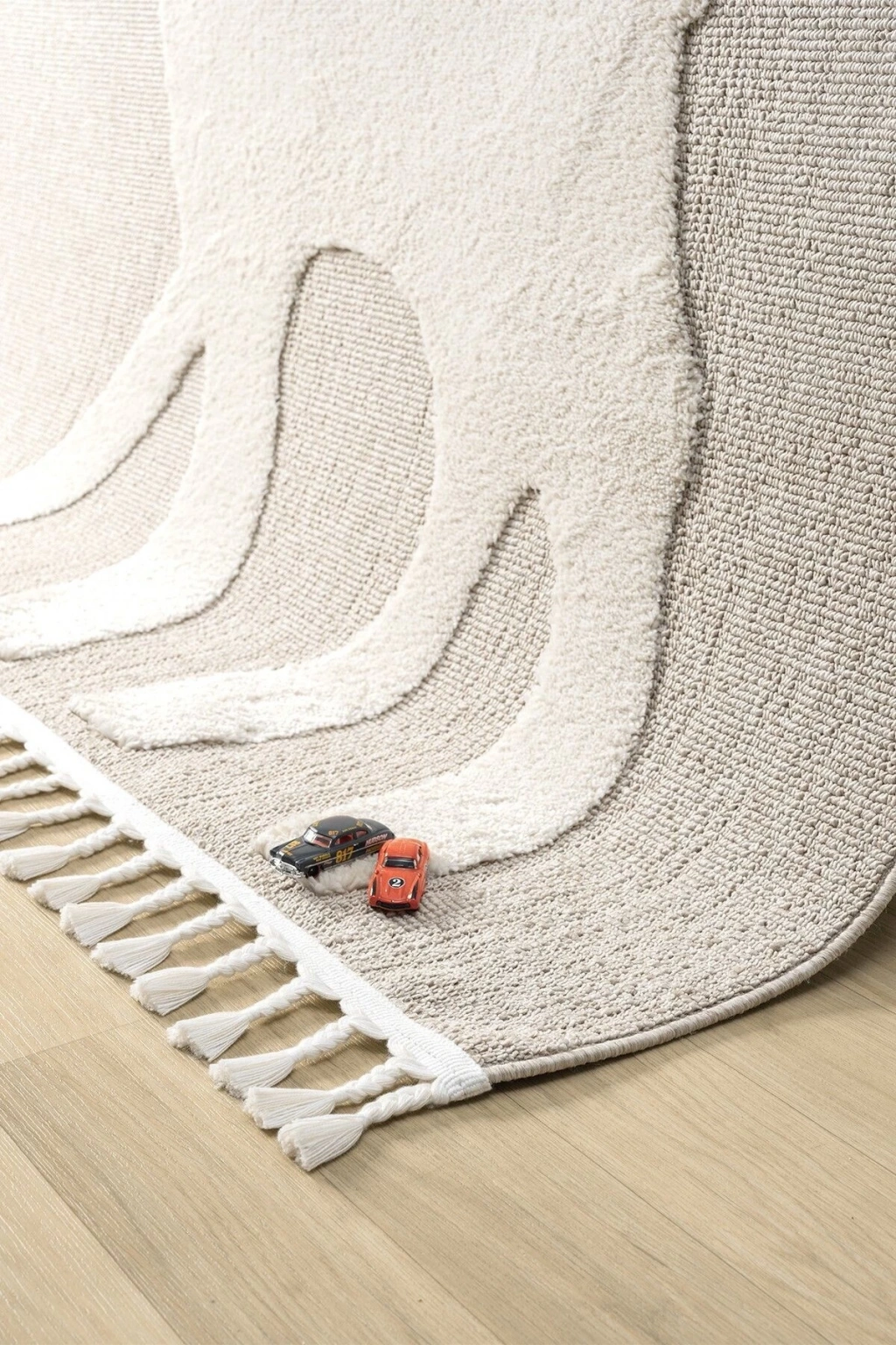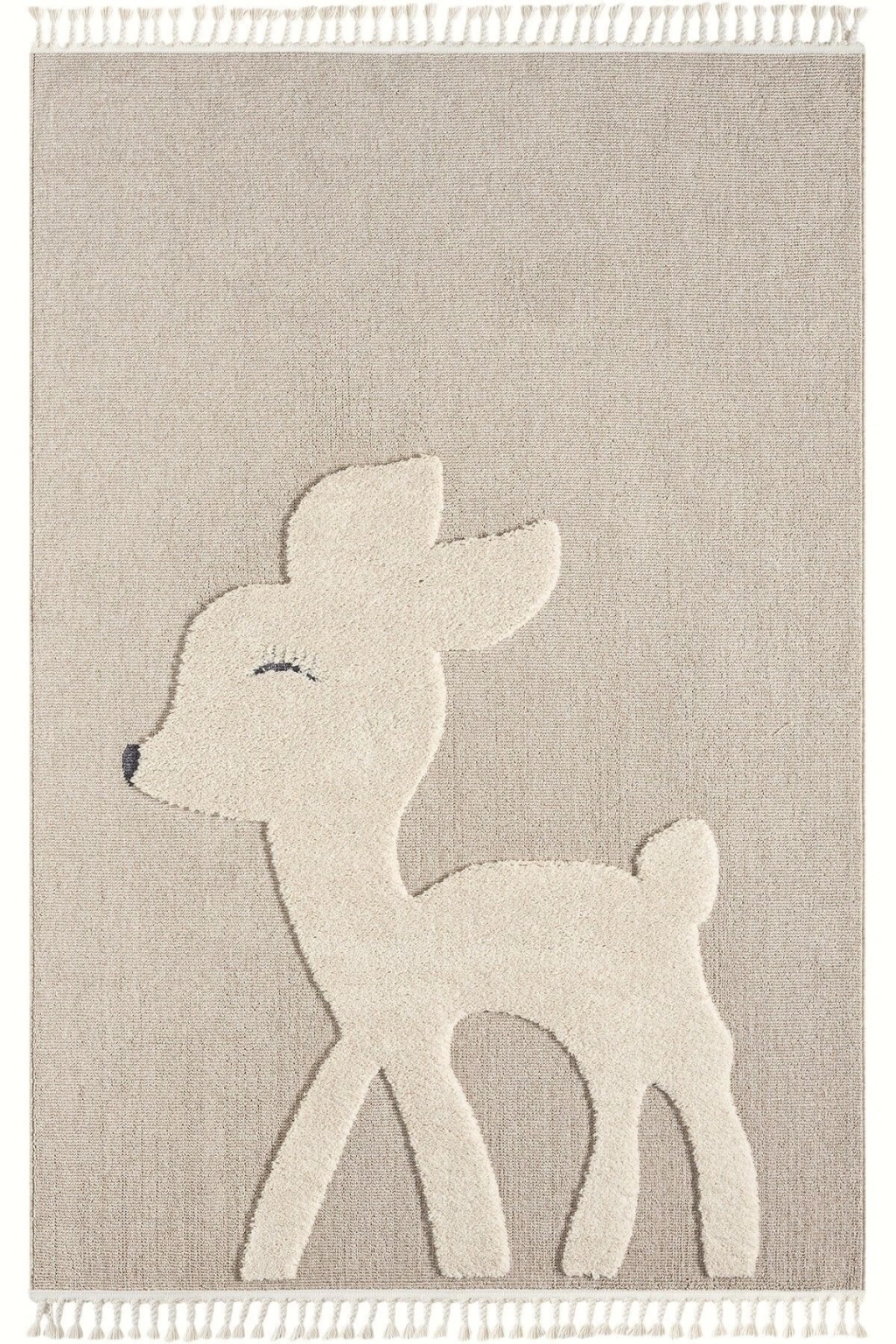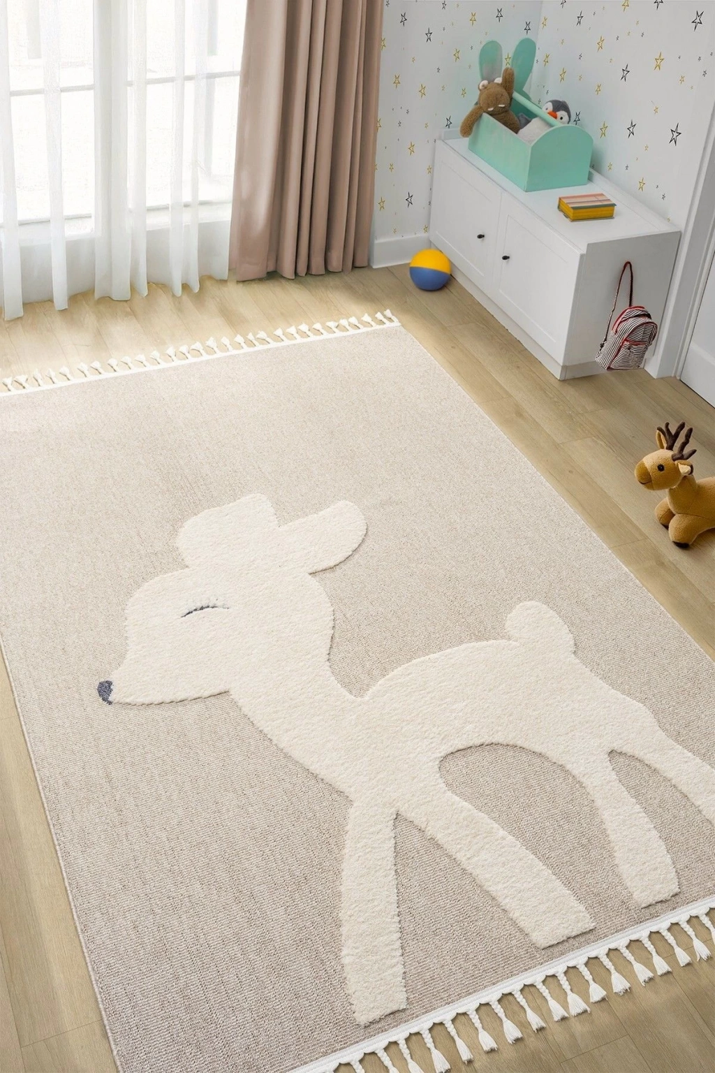 Bej Krem Yumuşak Bukleli Dokuma Halı Bebek Odası Çocuk Odası Genç Odası Halısı 18