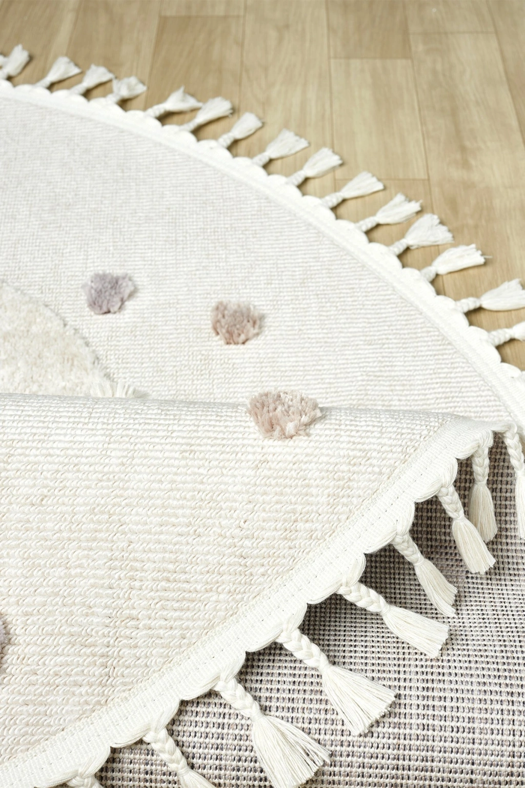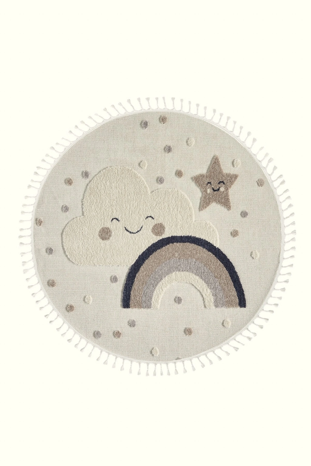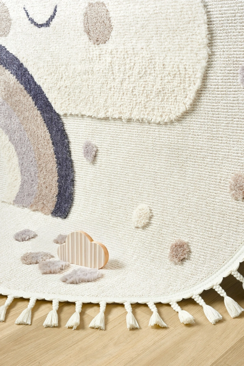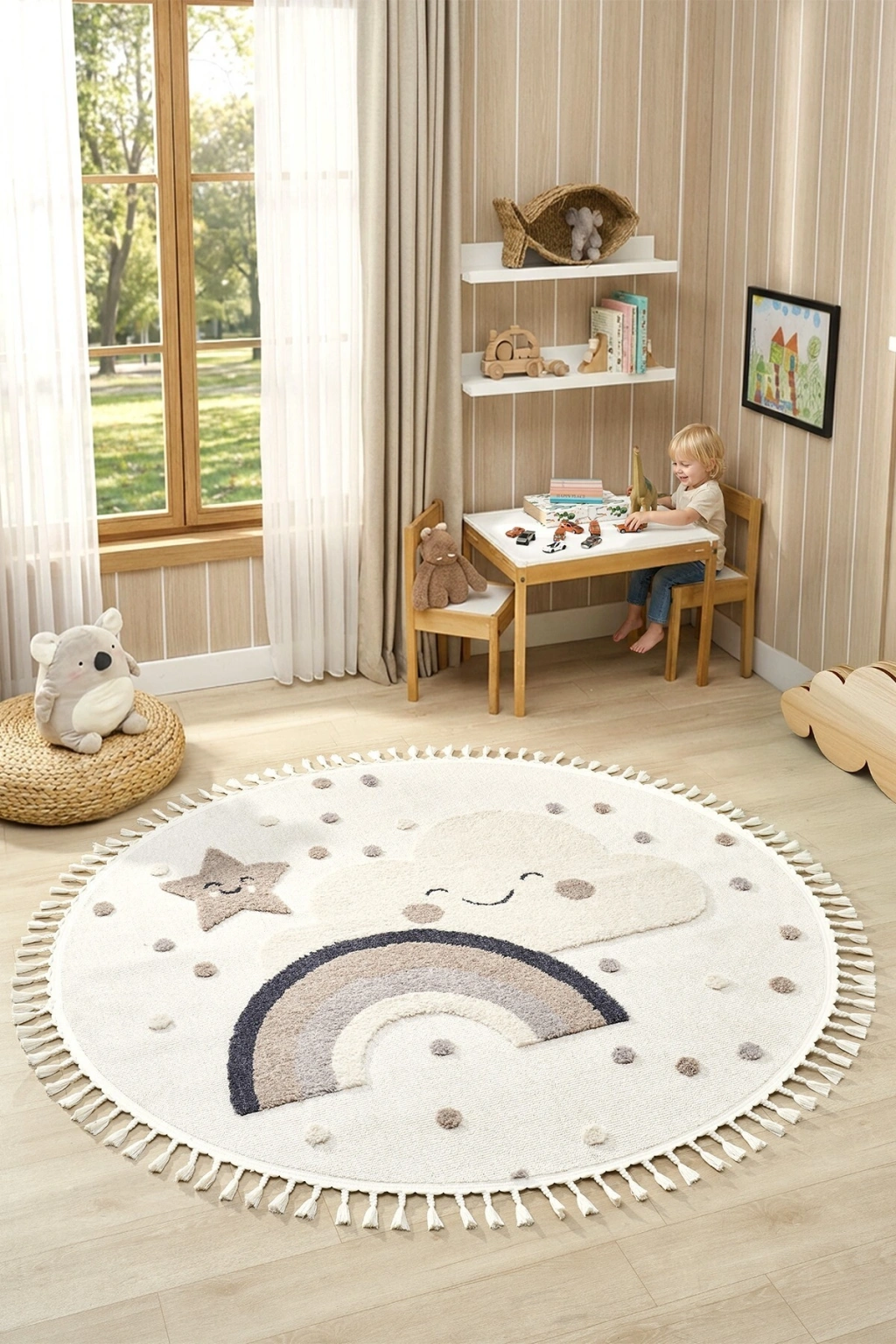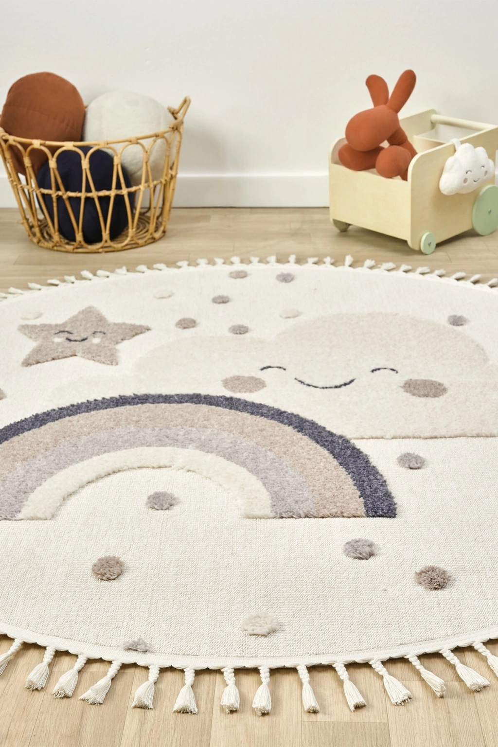 Daire Yuvarlak Yumuşak Bukleli Gökkuşağı Figürlü Dokuma Halı Bebek Odası Çocuk Odası Halısı 20 DAİRE