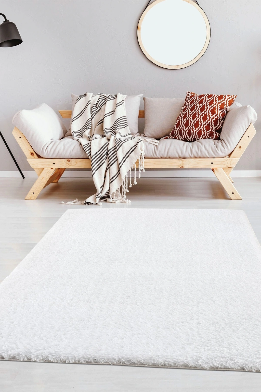 Kar Beyazı Peluş Dokuma Halı Oturma Odası Salon Çocuk Odası Yatak Odası Halısı BEYAZ