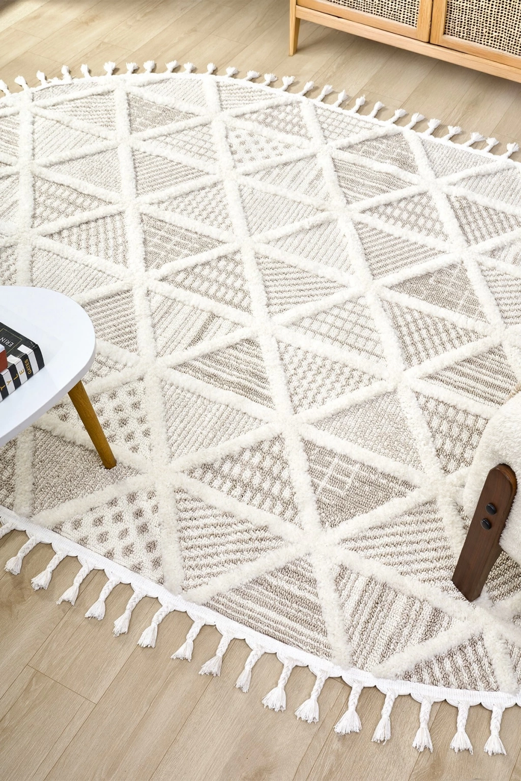 Krem Bej Dokuma Oval Halı Antre Çocuk Odası Oturma Odası Salon Mutfak Halısı OVAL