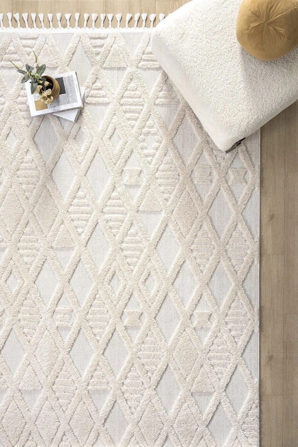 Krem Modern Dokuma Halı Yolluk Antre Oturma Odası Salon Mutfak Halısı