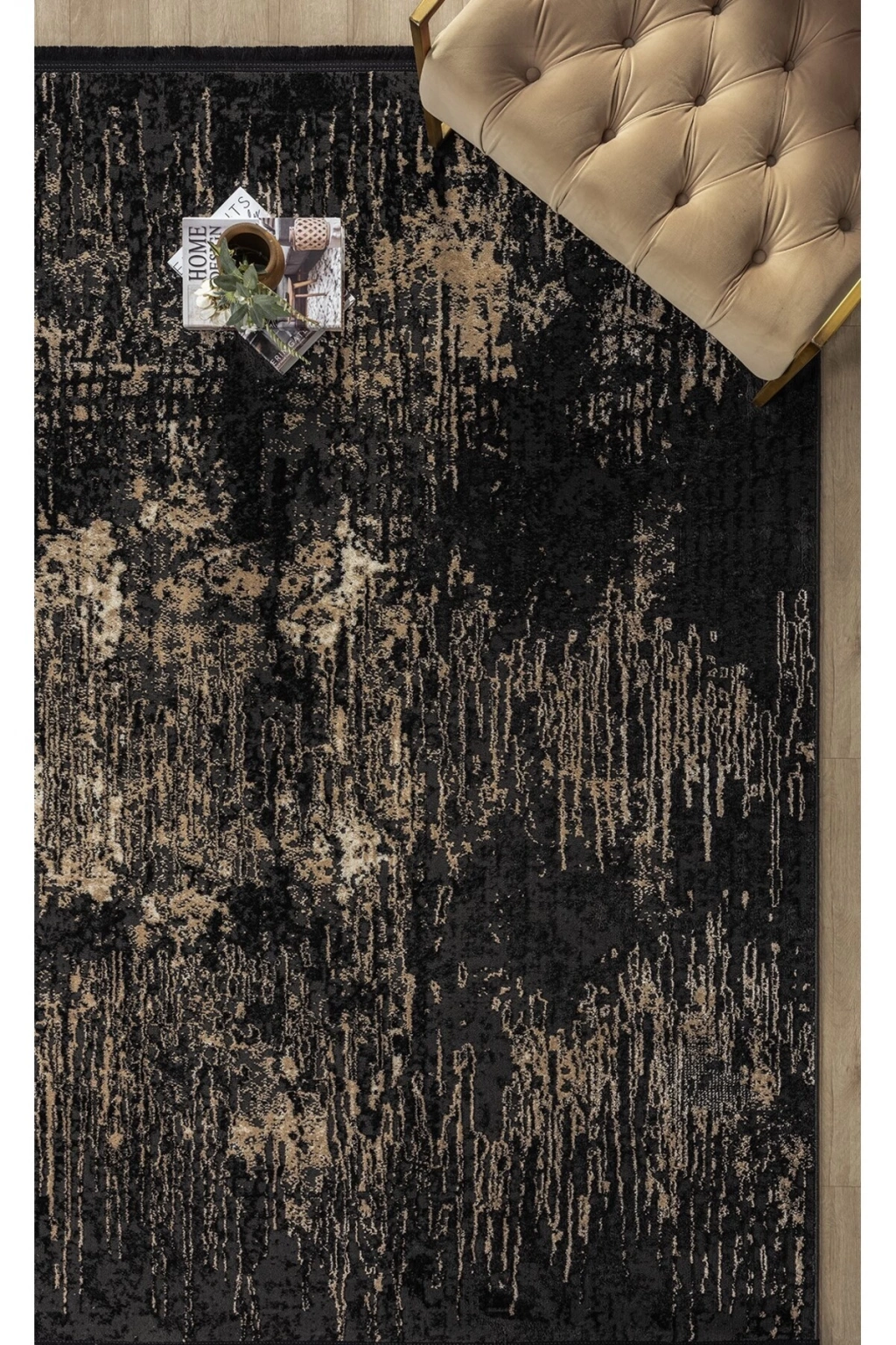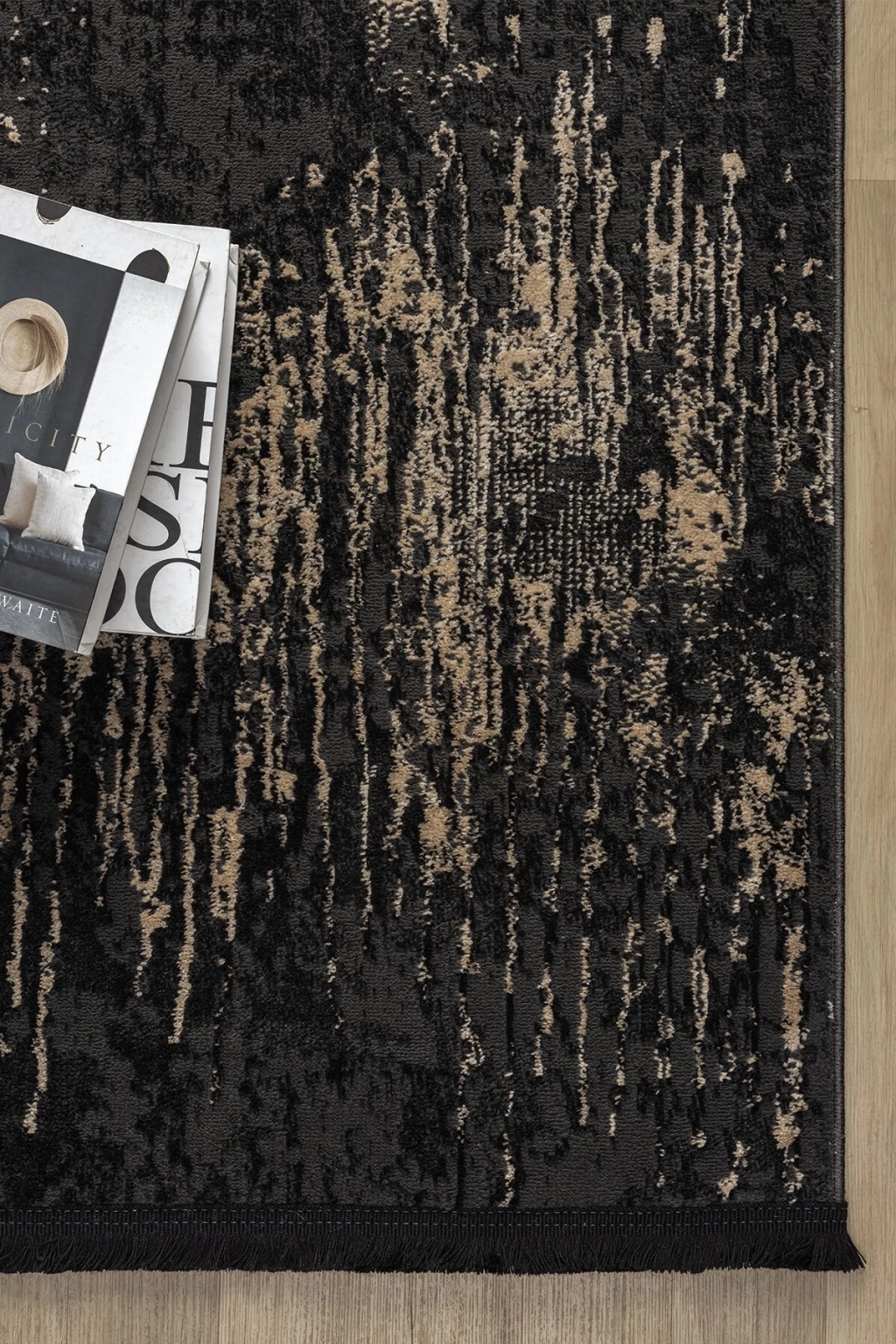 Modern Siyah Dokuma Halı Yolluk Antre Oturma Odası Salon Mutfak Halısı