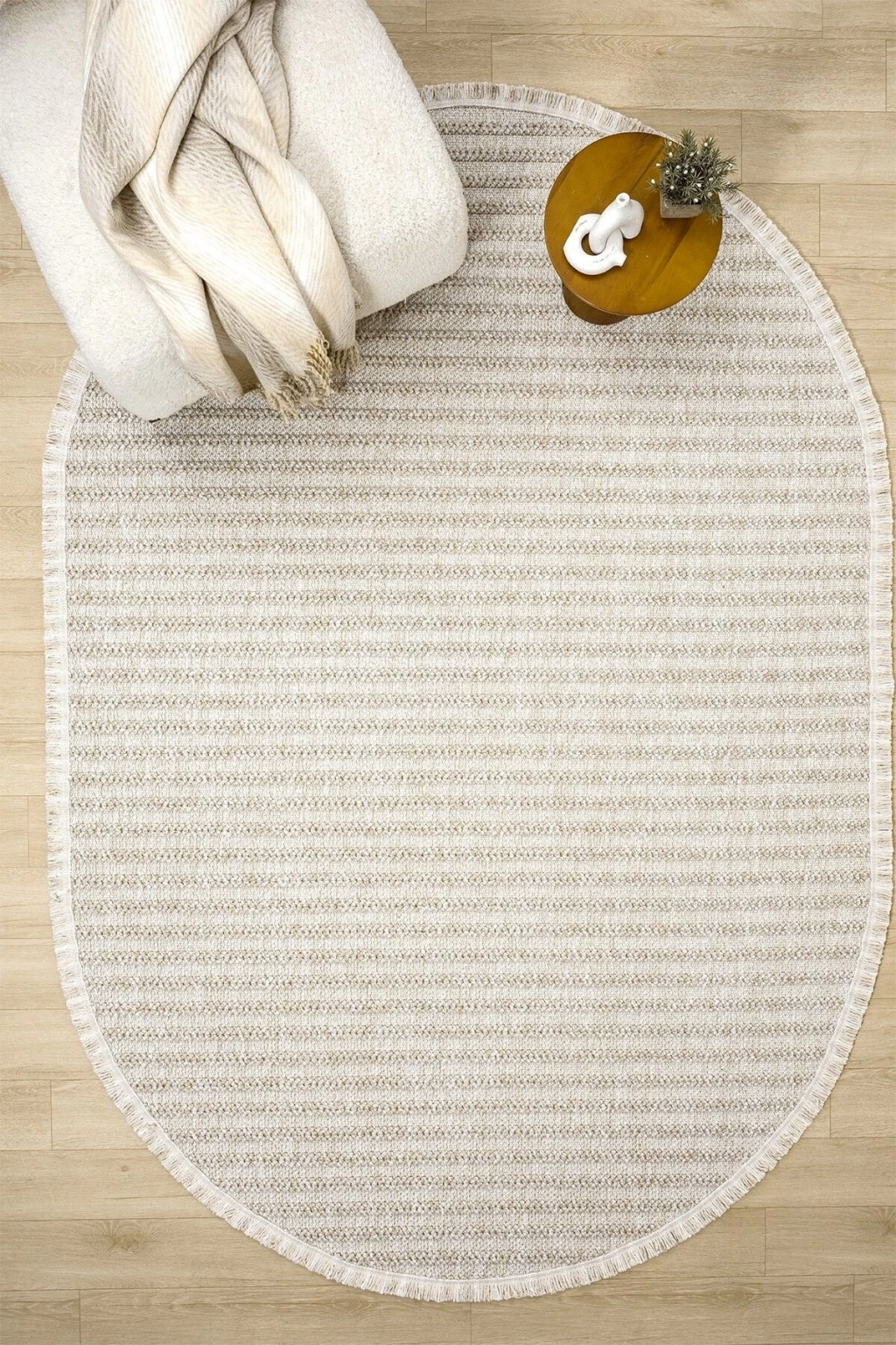 Oval Bej Halı Modern Oturma Odası Salon Mutfak Koridor Antre Balkon Çocuk Odası Halısı 0019