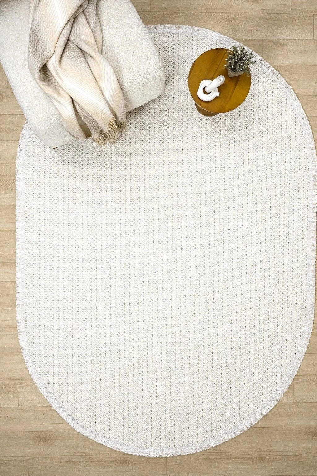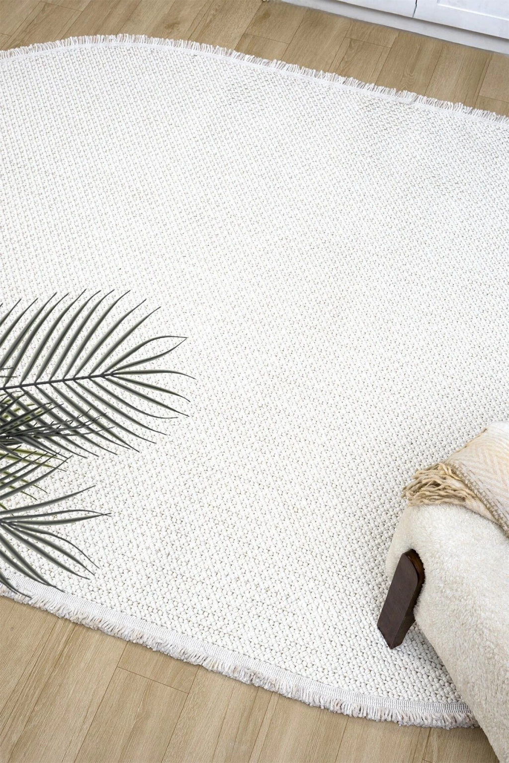 Oval Beyaz Halı Modern Oturma Odası Salon Mutfak Koridor Antre Balkon Çocuk Odası Halısı 007