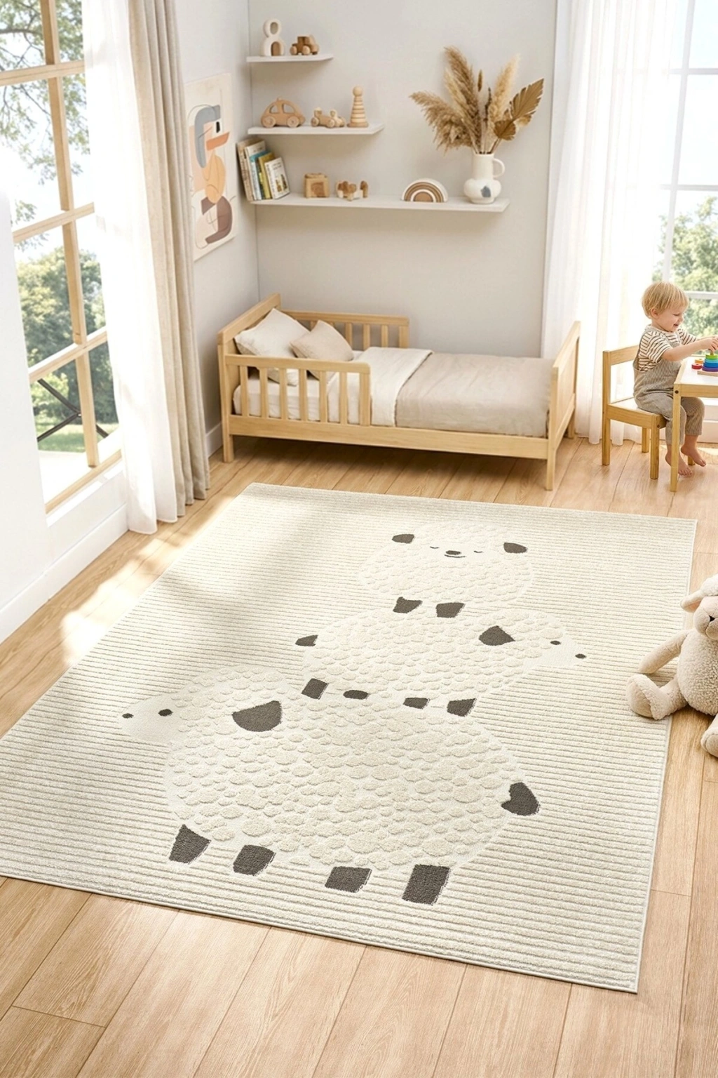 Yumuşak Dokuma Halı Kuzu Figürlü Leke Tutmaz Bebek Odası Çocuk Odası Genç Odası Halısı KUZU
