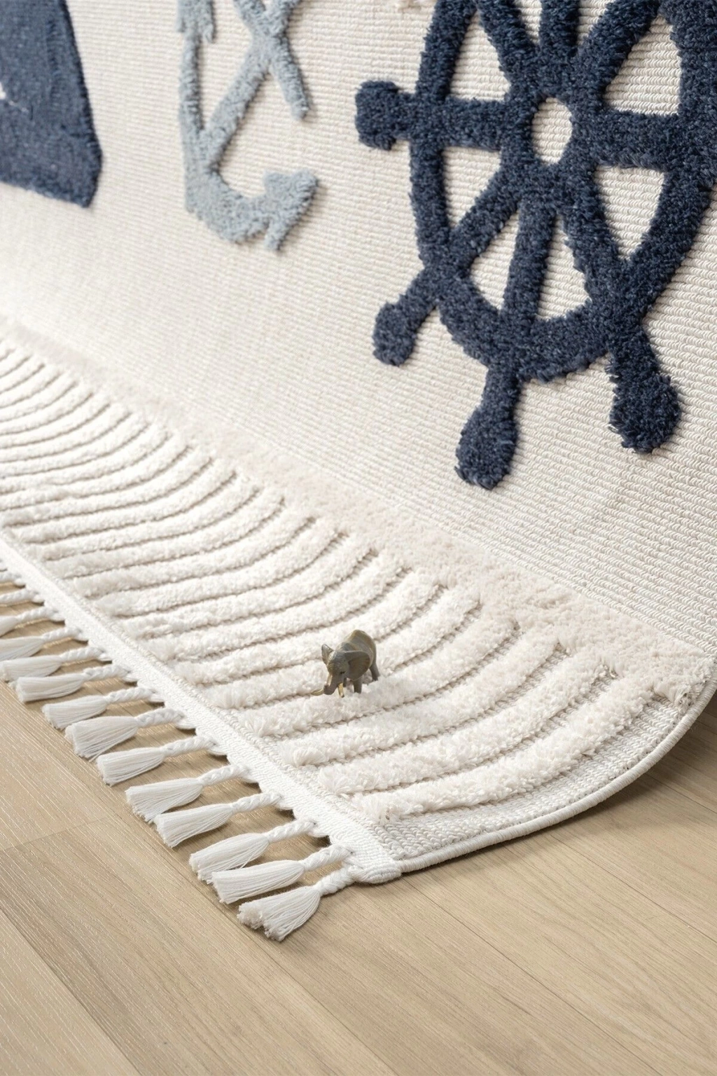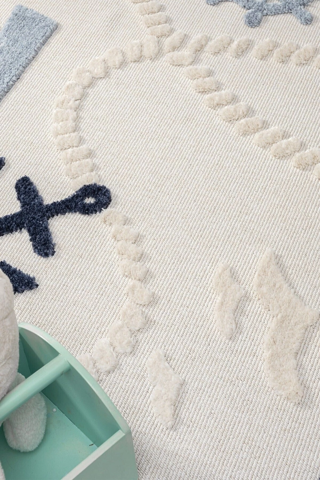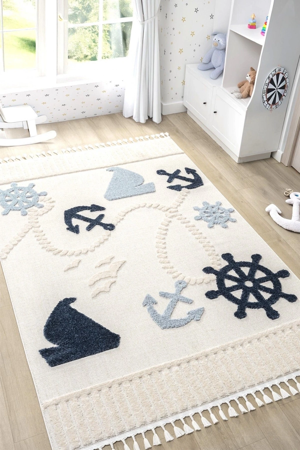 Yumuşak Renkli Bukleli Denizcilik Figürlü Dokuma Halı Bebek Odası Çocuk Odası Genç Odası Halısı 3