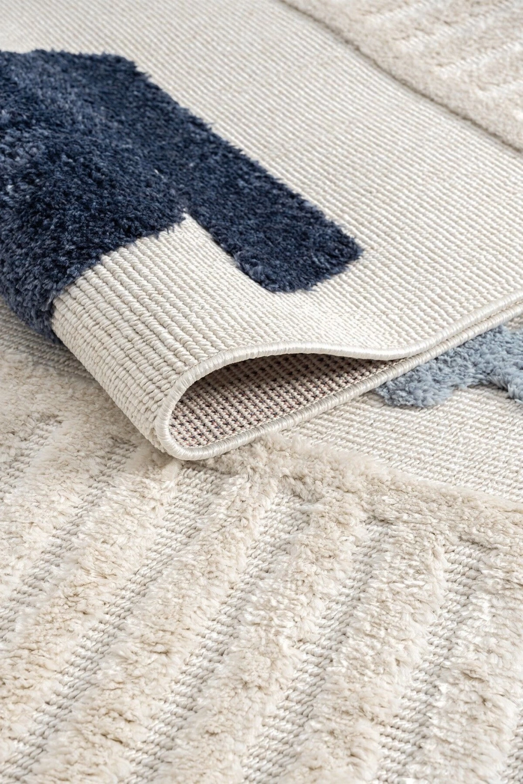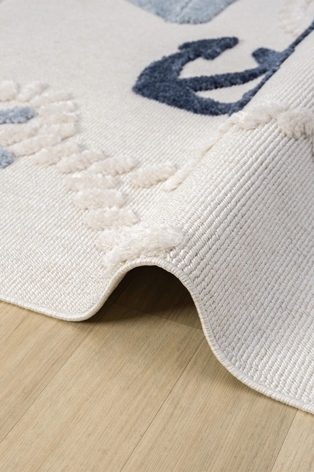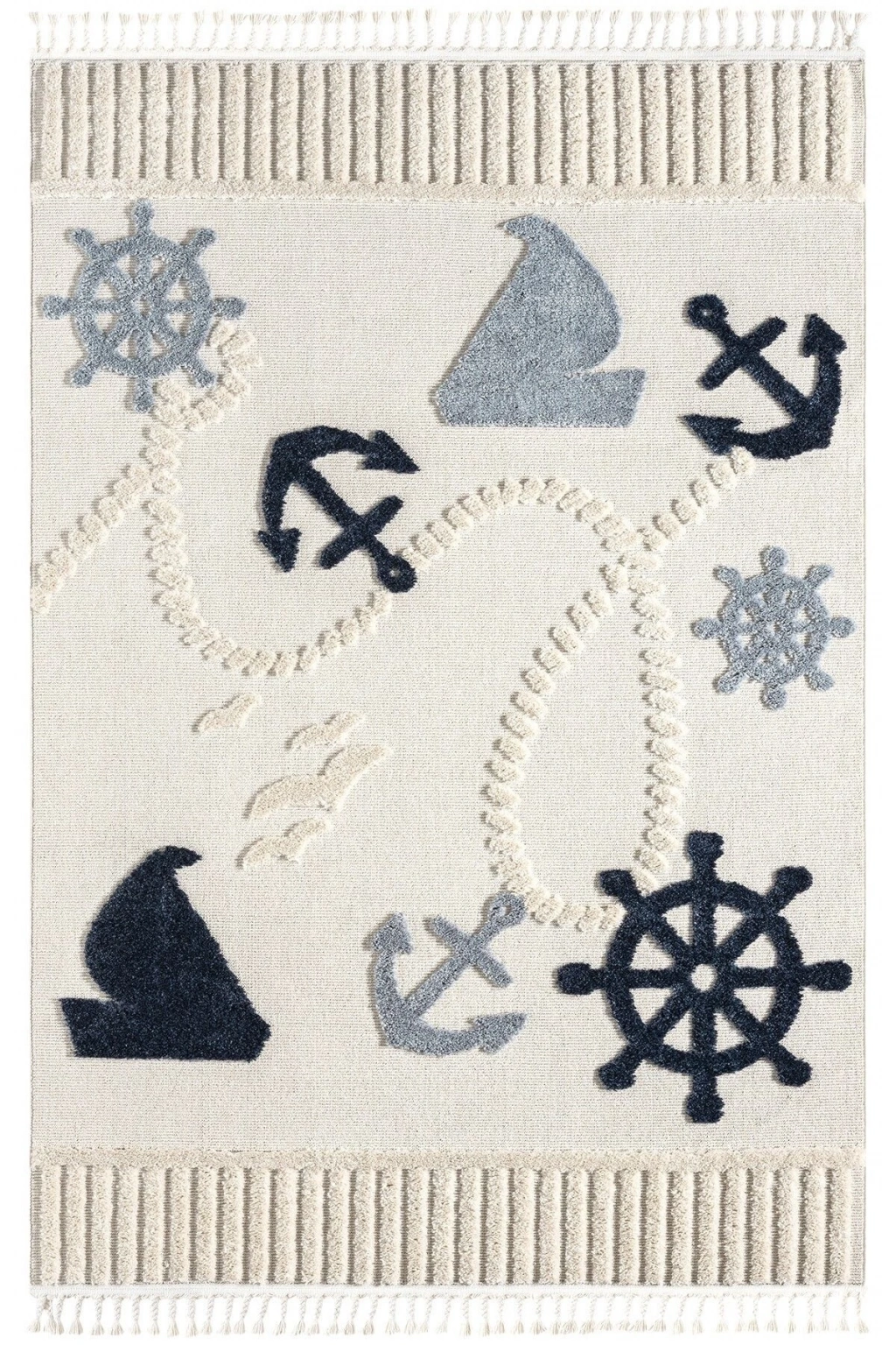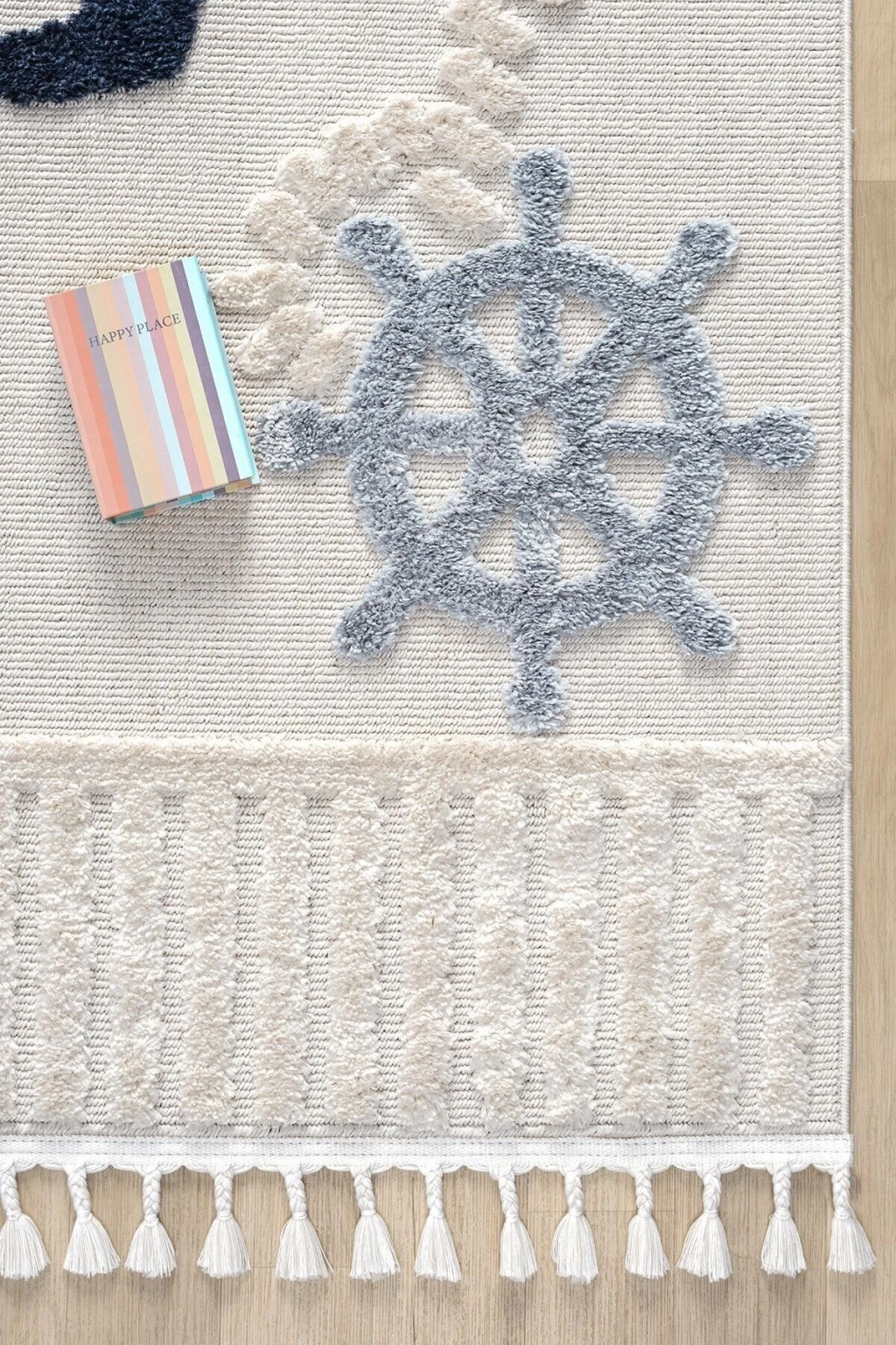 Yumuşak Renkli Bukleli Denizcilik Figürlü Dokuma Halı Bebek Odası Çocuk Odası Genç Odası Halısı 3